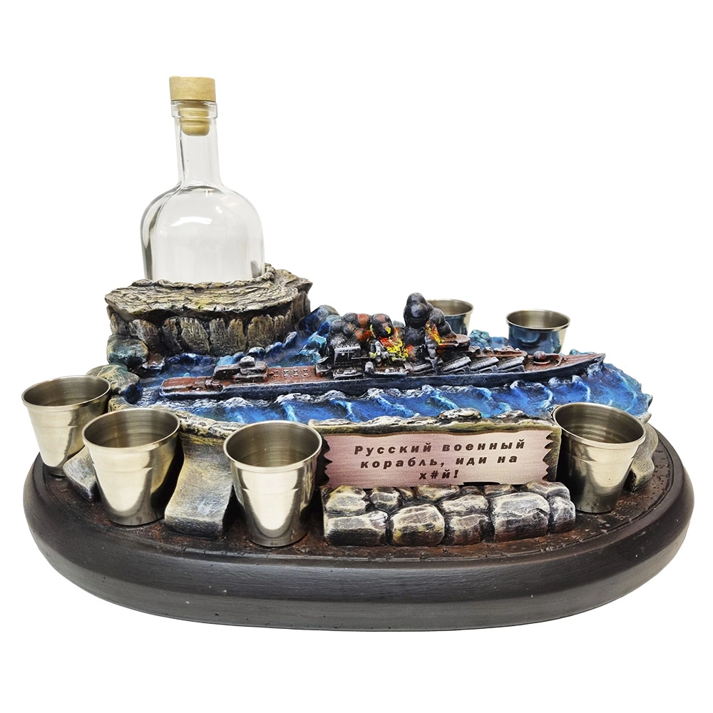 зображений точна копія крейсеру москва який палає.